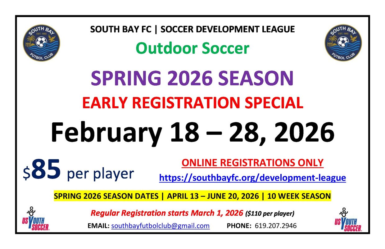 REGULAR REGISTRATION START MARCH 1, 2026 ($110 per player)